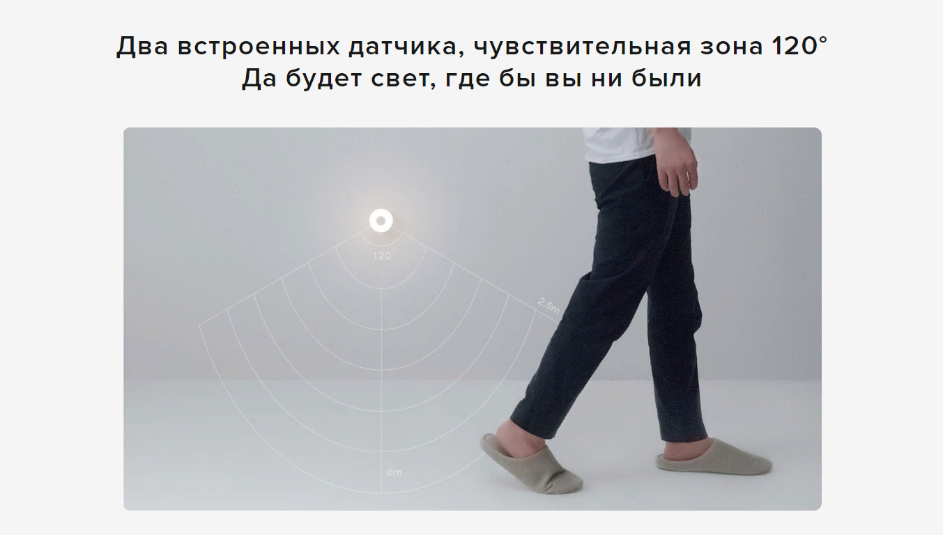 Два встроенных датчика, чувствительная зона 120°. Да будет свет, где бы вы ни были